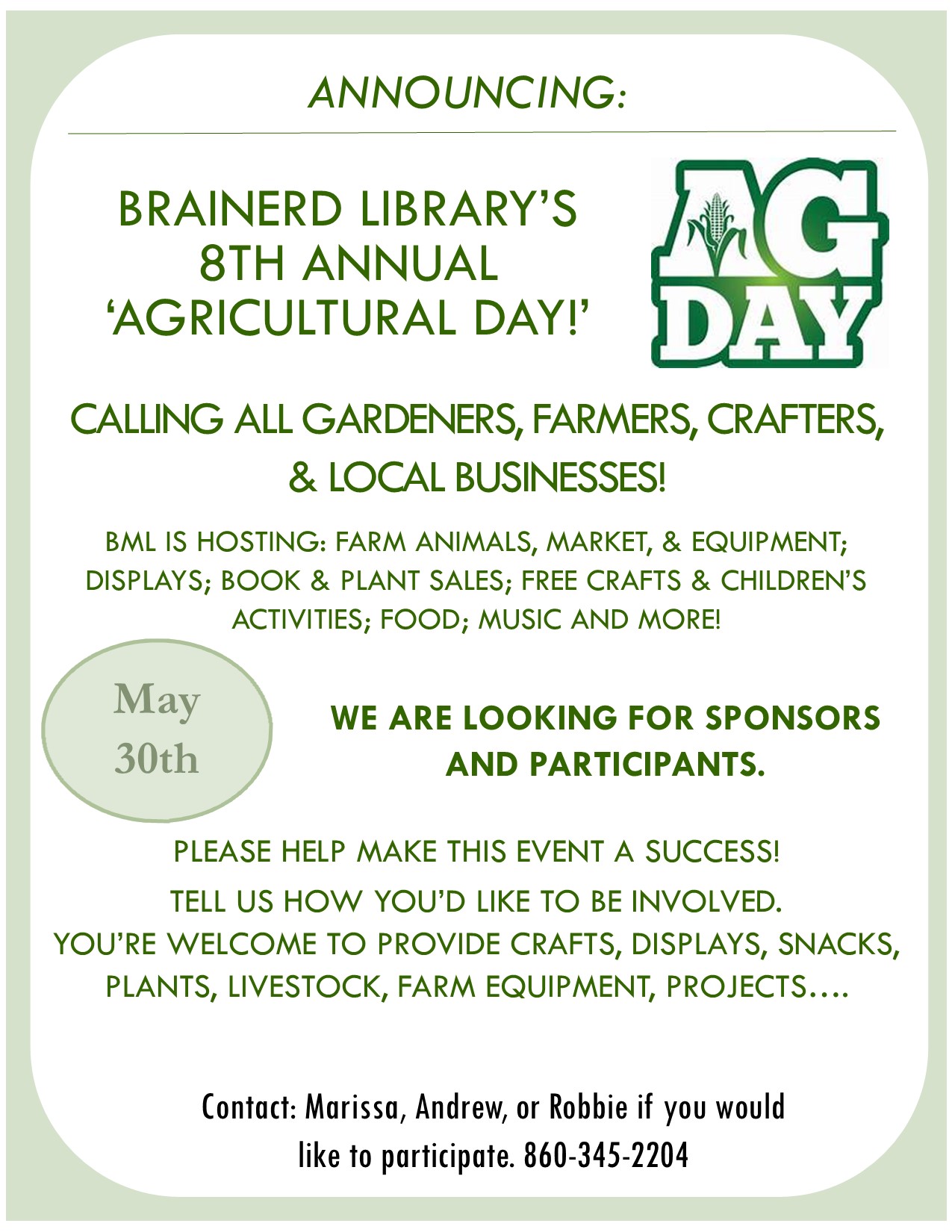 Brainerd Library will help provide the books.
